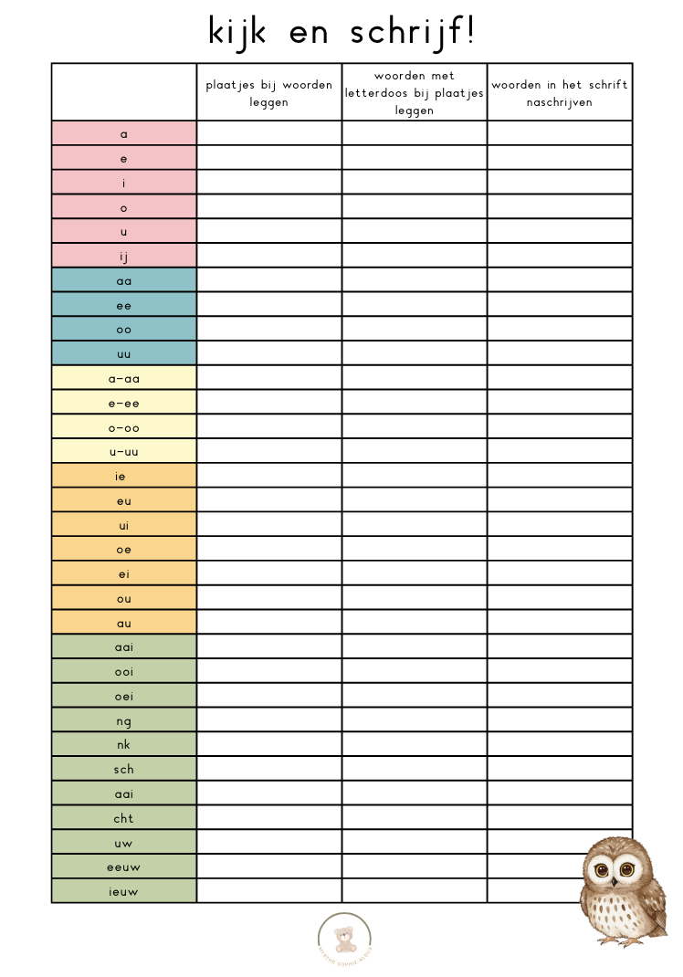 Het aftekenblad voor de leerkracht passend bij de werkjes van 'Kijk en schrijf!'. Zo ben je op de hoogte van de voortgang van ieder kind.